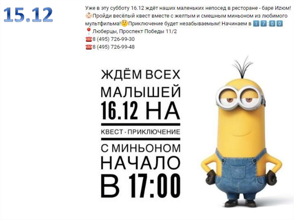 Квест-приключение с миньоном. Ресторан-бар «Изюм»
