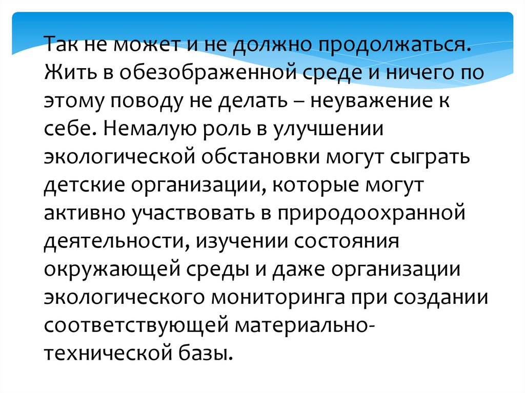 Так не может и не должно продолжаться.Жить в обезображенной среде и ничего по