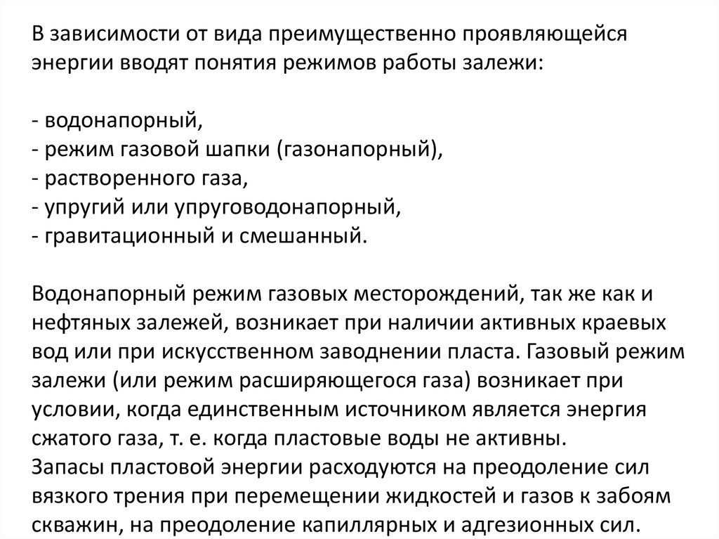 В зависимости от вида преимущественно проявляющейсяэнергии вводят понятия режимов работы залежи: