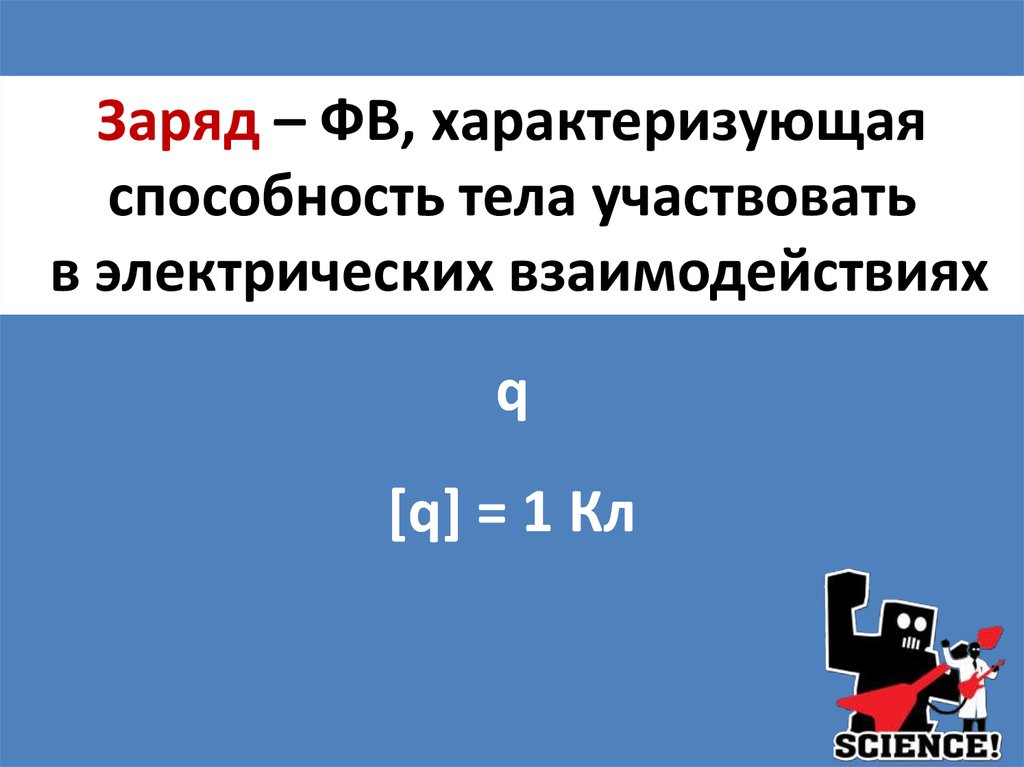 Заряд – ФВ, характеризующаяспособность тела участвовать