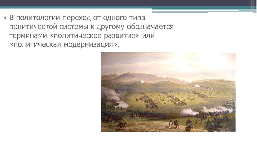 • В политологии переход от одного типаполитической системы к другому обозначается