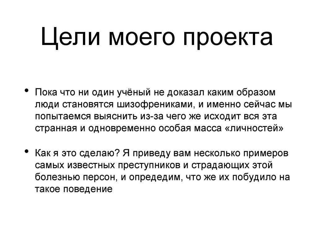 Цели моего проектаПока что ни один учёный не доказал каким образом