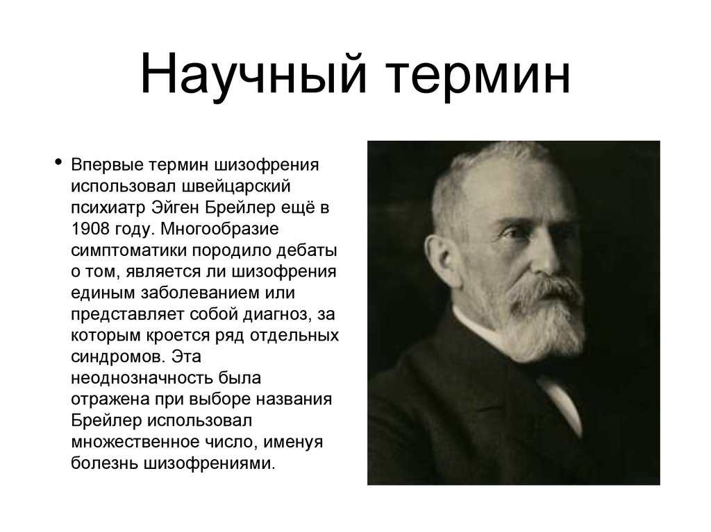 Научный терминВпервые термин шизофрения