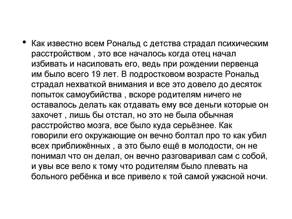 Как известно всем Рональд с детства страдал психическим