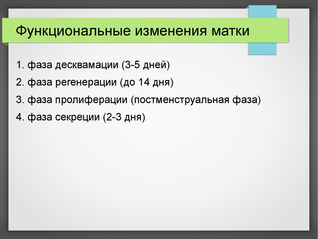 Функциональные изменения матки1. фаза десквамации (3-5 дней)