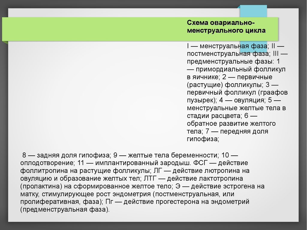 Схема овариальноменструального циклаI — менструальная фаза; II —