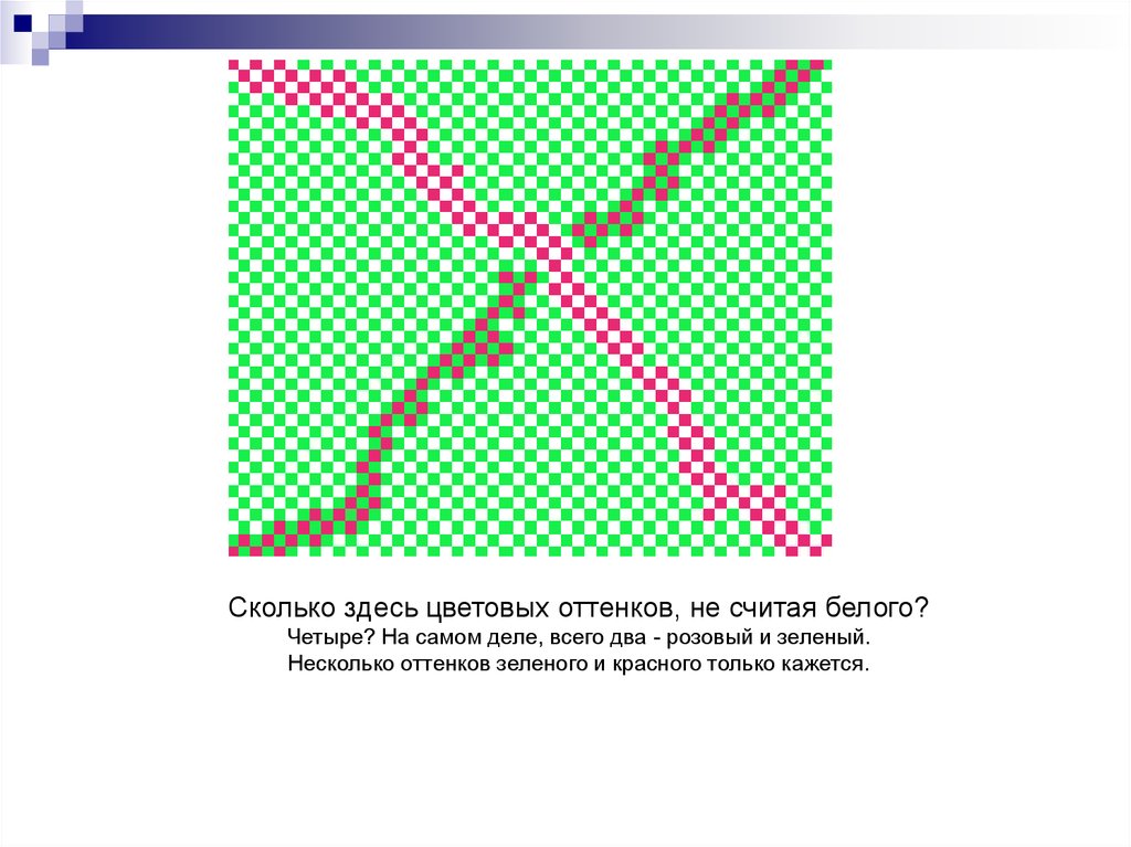 Сколько здесь цветовых оттенков, не считая белого?Четыре? На самом деле, всего два - розовый и зеленый.