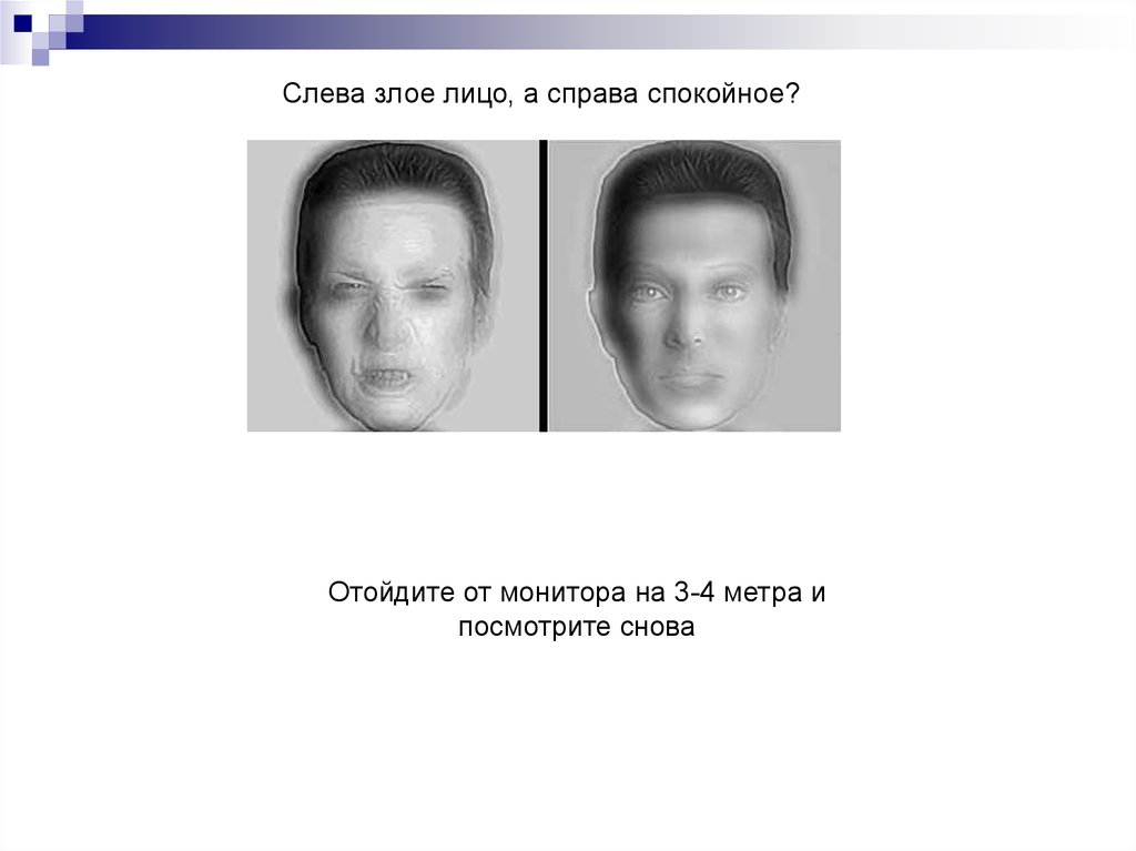 Слева злое лицо, а справа спокойное?Отойдите от монитора на 3-4 метра и