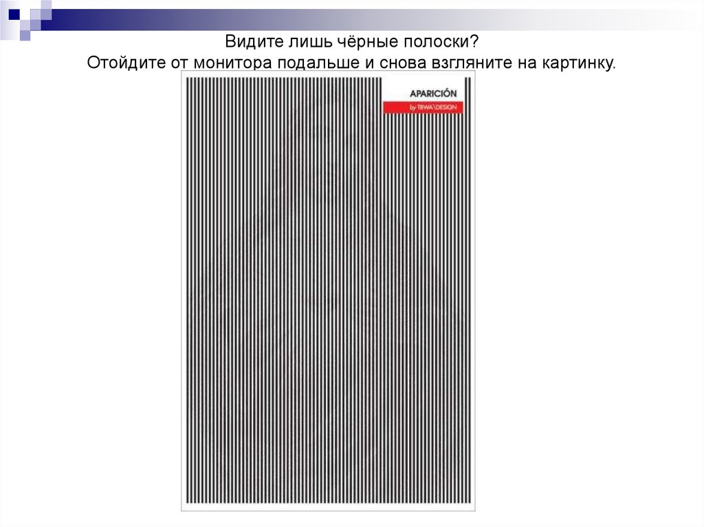 Видите лишь чёрные полоски?Отойдите от монитора подальше и снова взгляните на картинку.