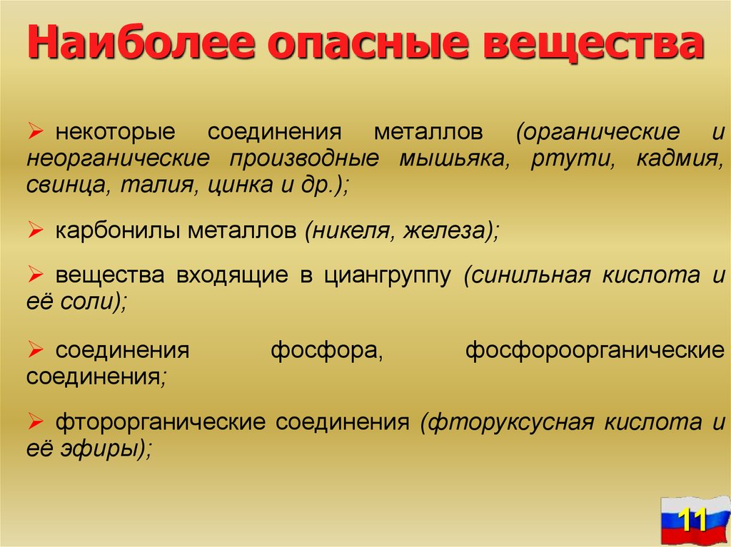 Наиболее опасные веществанекоторые соединения металлов (органические и