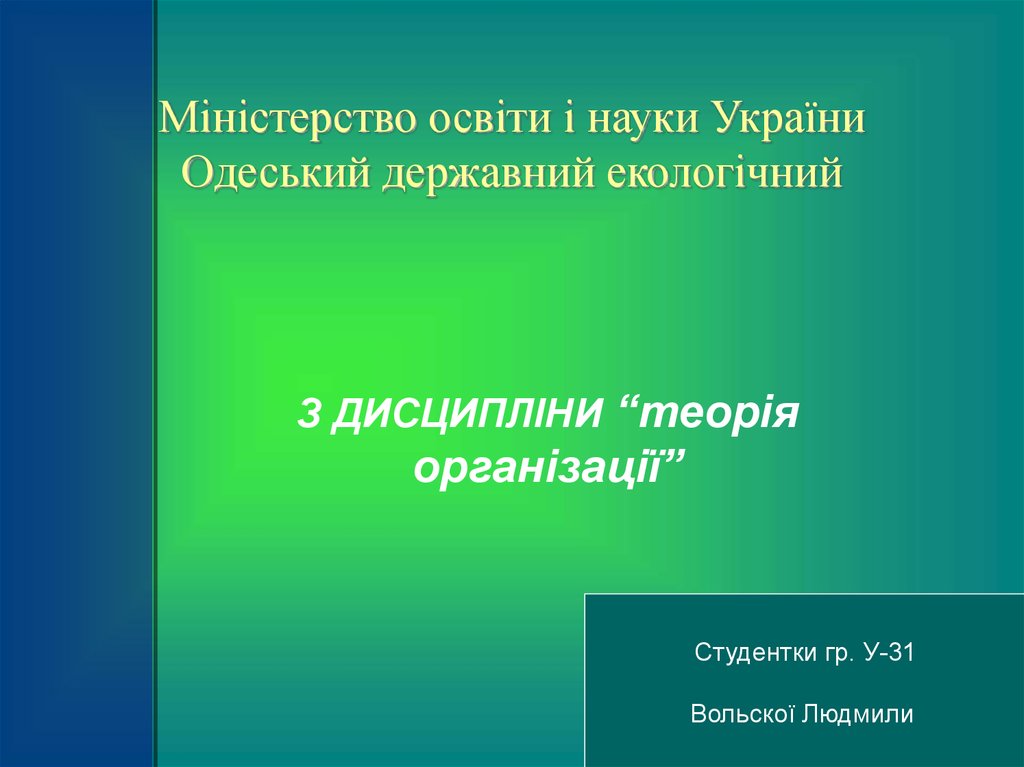 Міністерство освіти і науки УкраїниОдеський державний екологічний