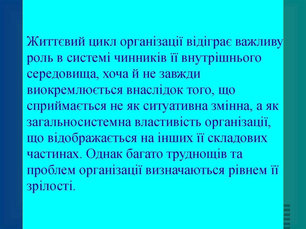 Життєвий цикл організації відіграє важливуроль в системі чинників її внутрішнього