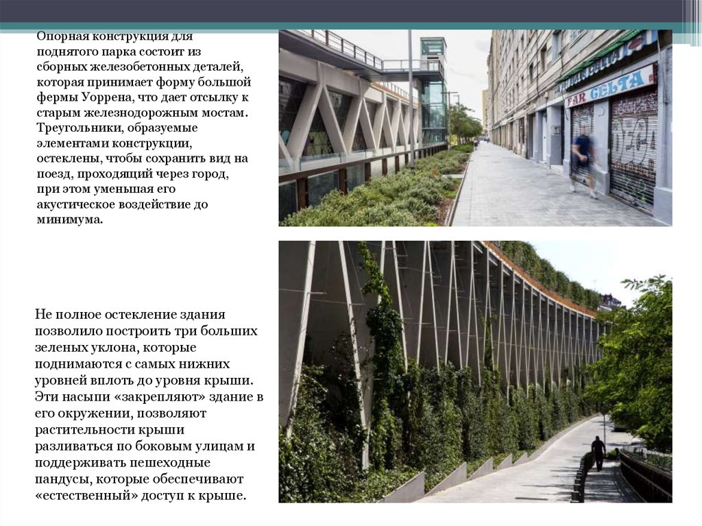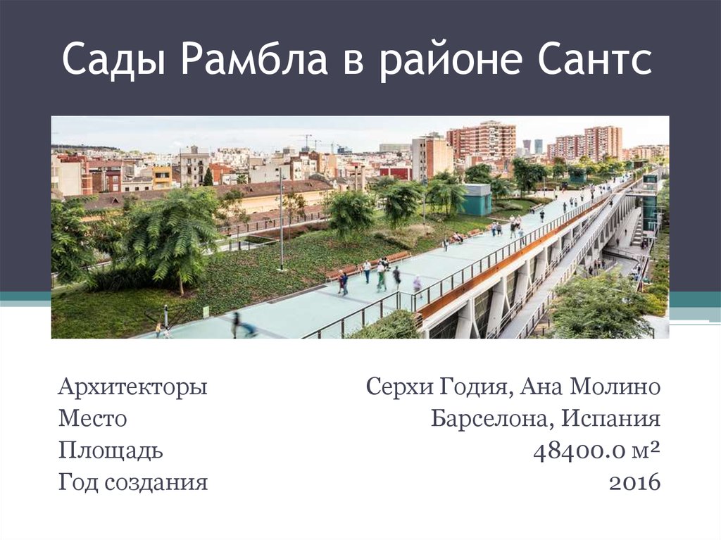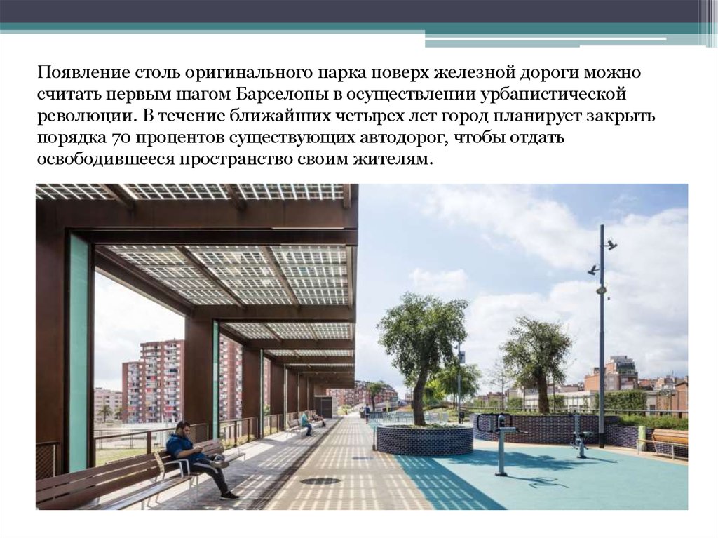 Появление столь оригинального парка поверх железной дороги можносчитать первым шагом Барселоны в осуществлении урбанистической