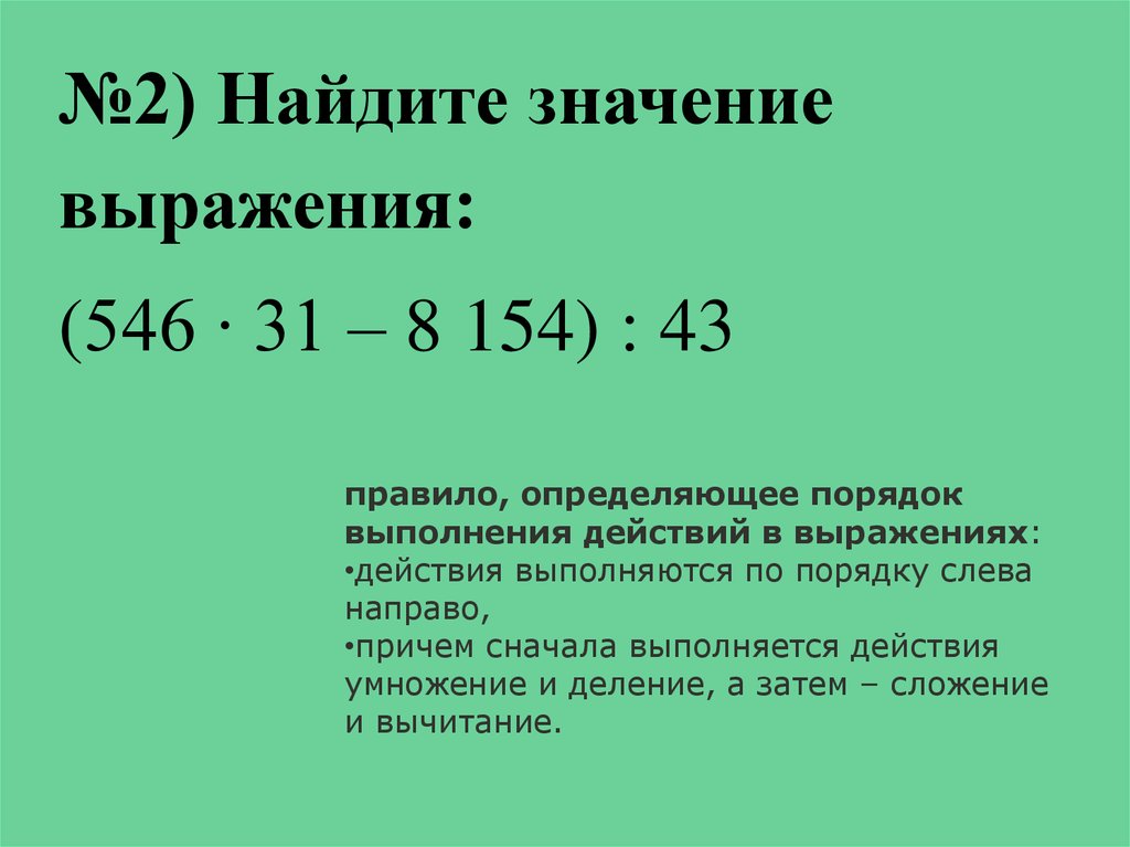 (546 ∙ 31 – 8 154) : 431. 546 ∙ 31 = 16 926