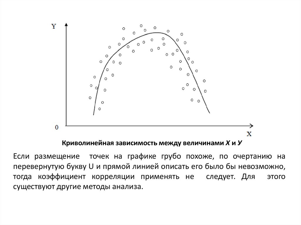При криволинейной зависимости равномерное изменение одного