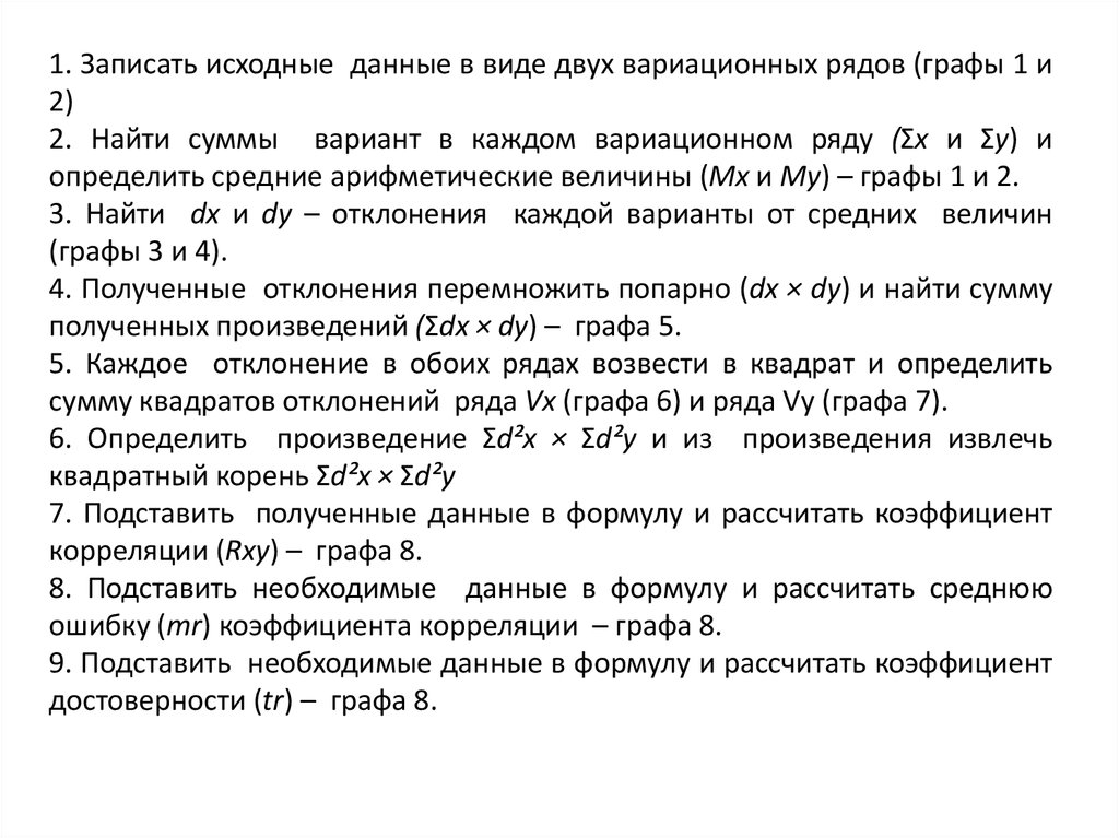 1. Составить ряды из парных признаков (графы 1 и 2).2. Каждую величину признака заменить ранговым (порядковым) номером – х′