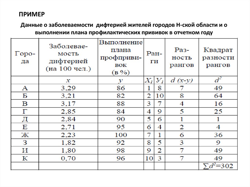 ПРИМЕРДанные о заболеваемости дифтерией жителей городов Н-ской области и о