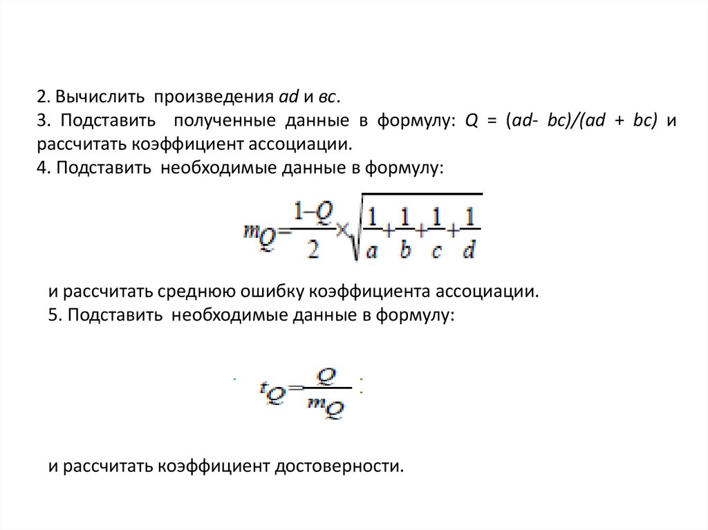 рассчитать коэффициент ассоциации.