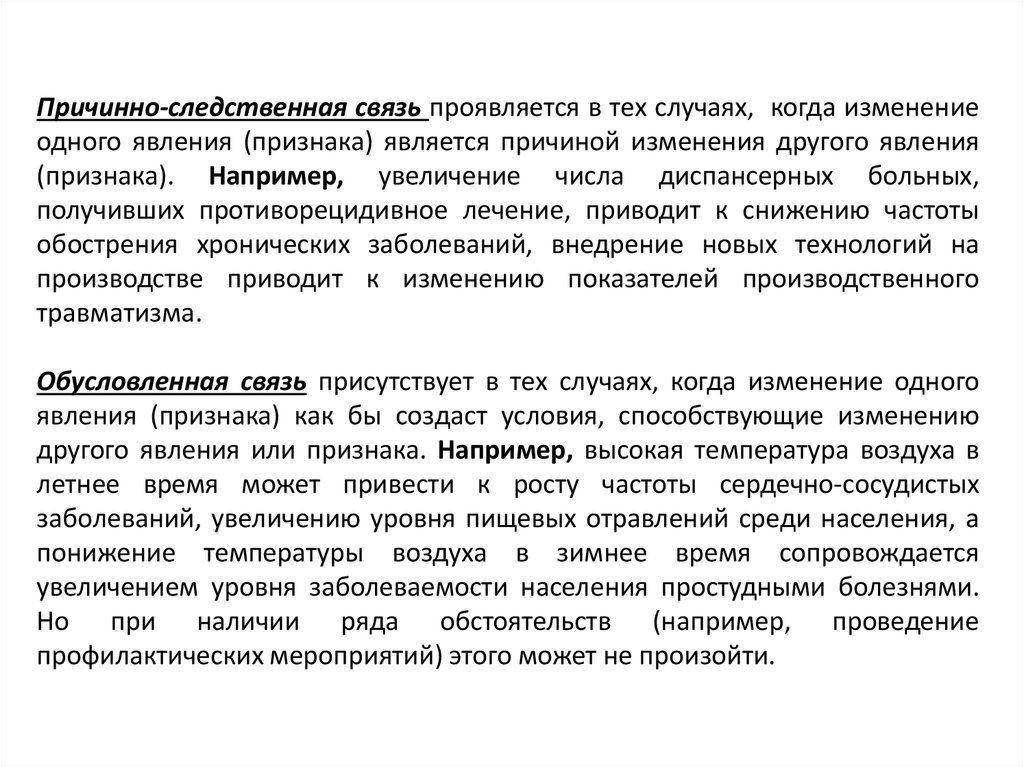 Причинно-следственная связь проявляется в тех случаях, когда изменениеодного явления (признака) является причиной изменения другого явления