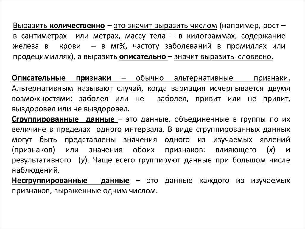 Изучаемые явления (признаки) могут быть выражены количественно