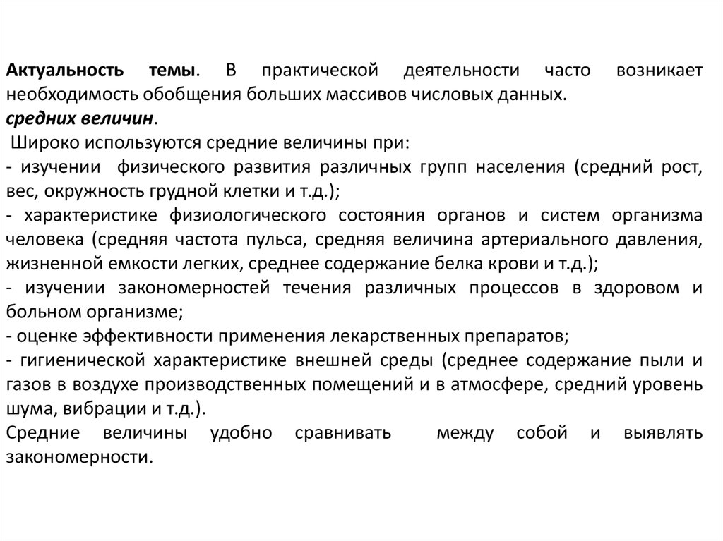 Актуальность темы. В практической деятельности часто возникаетнеобходимость обобщения больших массивов числовых данных.