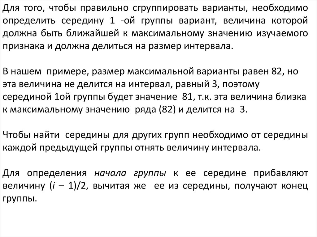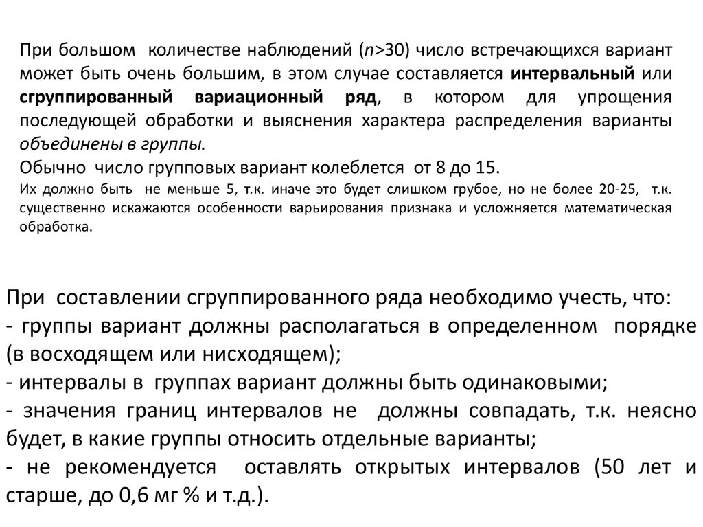 существенно искажаются особенности варьирования признака и усложняется математическая