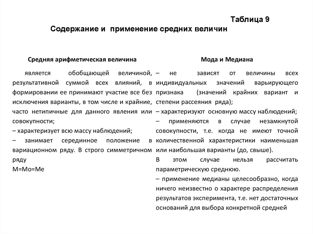 жизненной емкости легких, среднее содержание белка крови и т.д.);