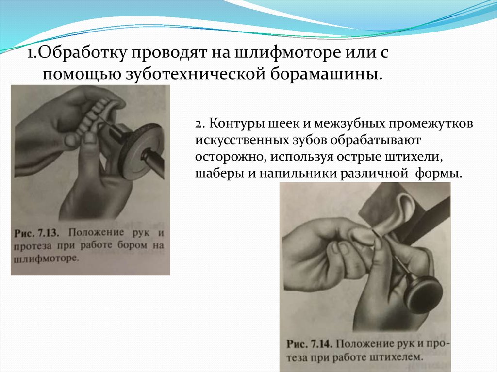 1.Обработку проводят на шлифмоторе или спомощью зуботехнической борамашины.