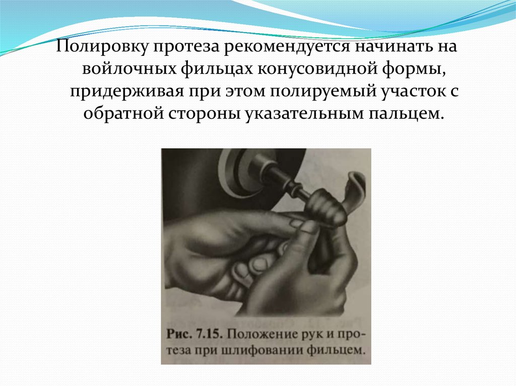 Полировку протеза рекомендуется начинать навойлочных фильцах конусовидной формы,