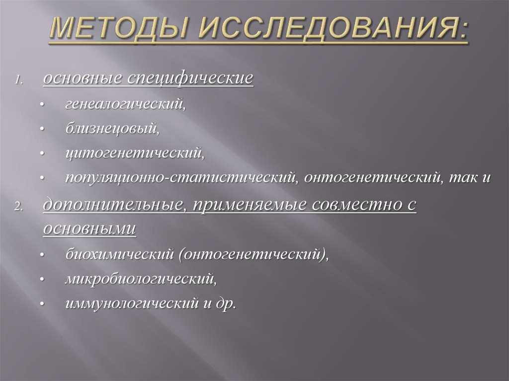 Биохимический метод – изучение химическогосостава организма. Метод основан на изучении
