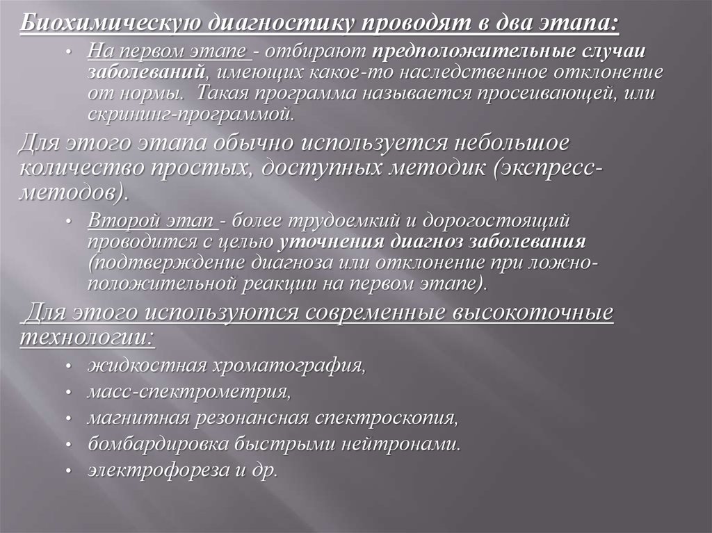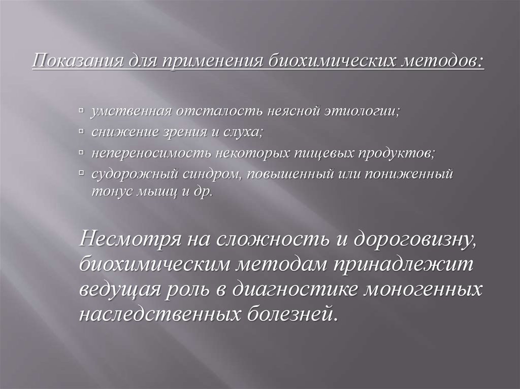 Показания для применения биохимических методов:умственная отсталость неясной этиологии;
