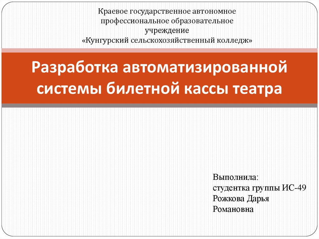 управления театральной кассой. Данная информационная