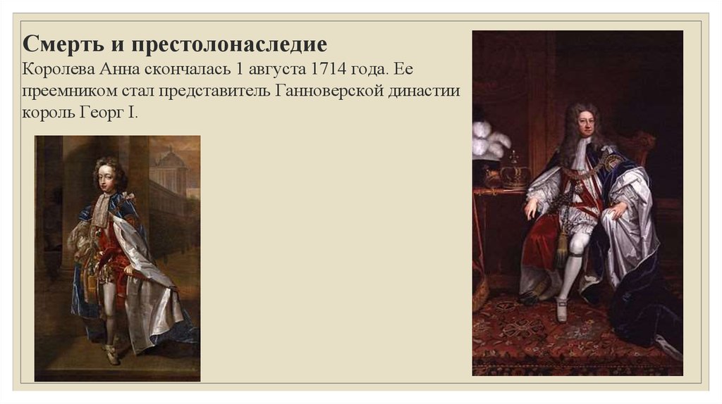 Смерть и престолонаследиеКоролева Анна скончалась 1 августа 1714 года. Ее