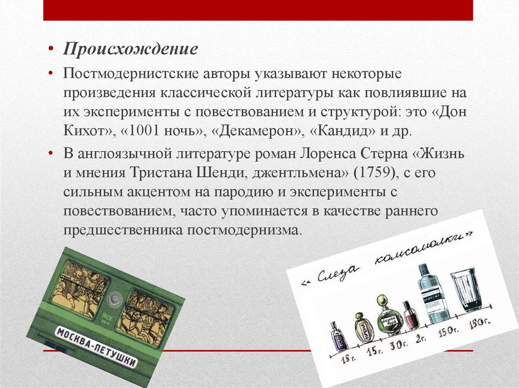• Происхождение• Постмодернистские авторы указывают некоторые