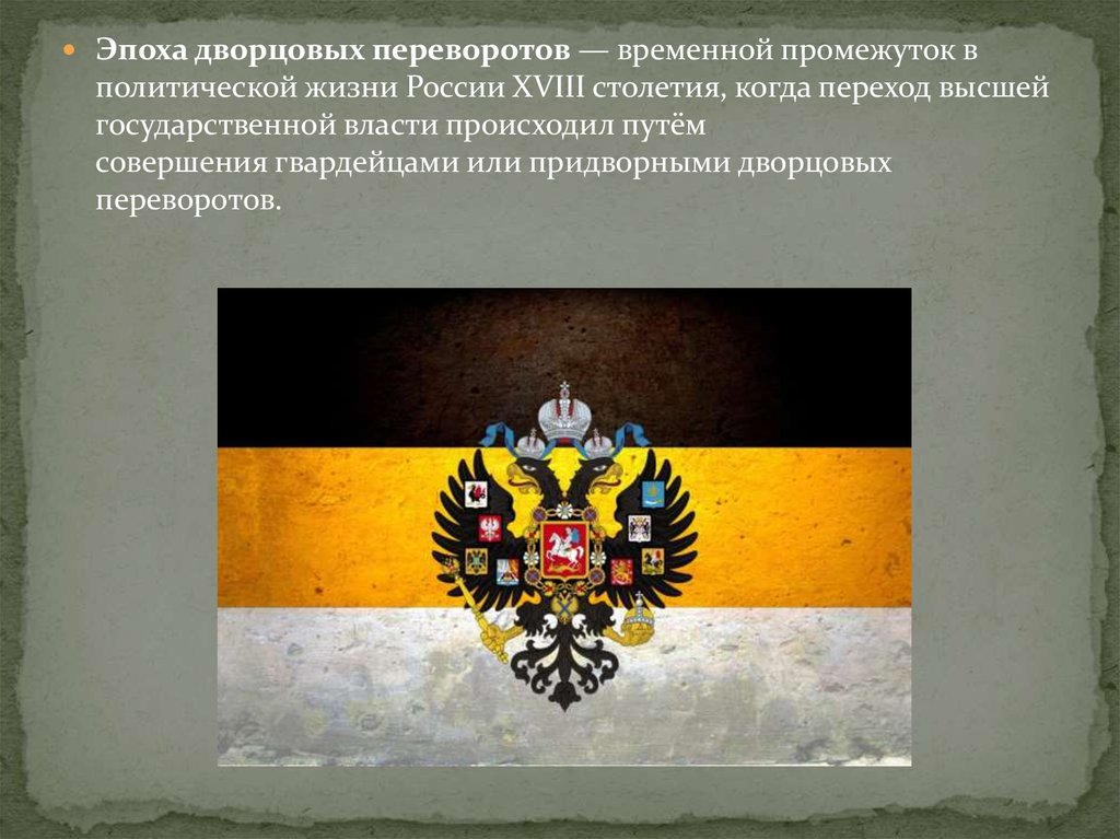 Эпоха дворцовых переворотов — временной промежуток вполитической жизни России XVIII столетия, когда переход высшей