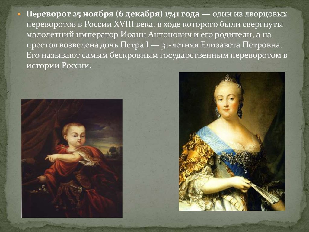 Переворот 25 ноября (6 декабря)1741 года — один из дворцовых