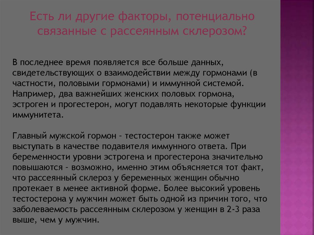 Есть ли другие факторы, потенциальносвязанные с рассеянным склерозом?