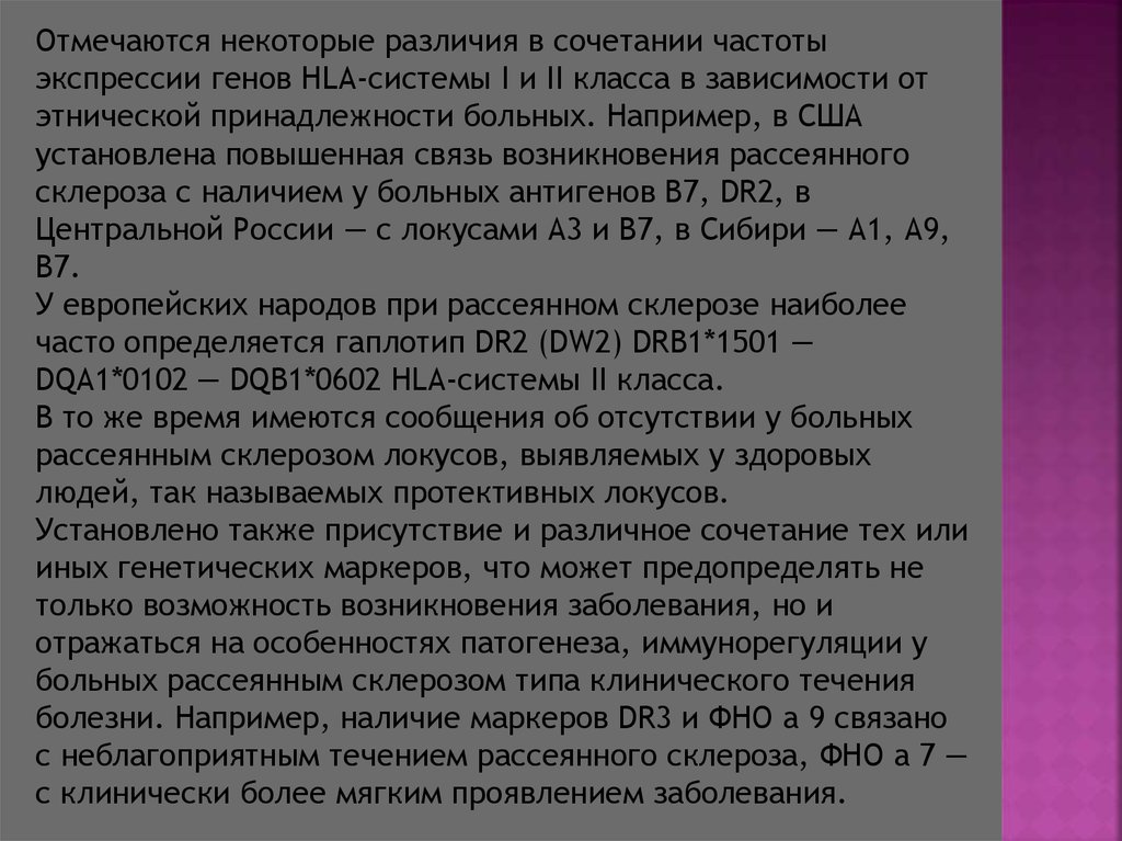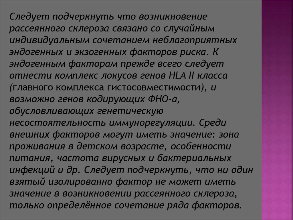 Следует подчеркнуть что возникновениерассеянного склероза связано со случайным