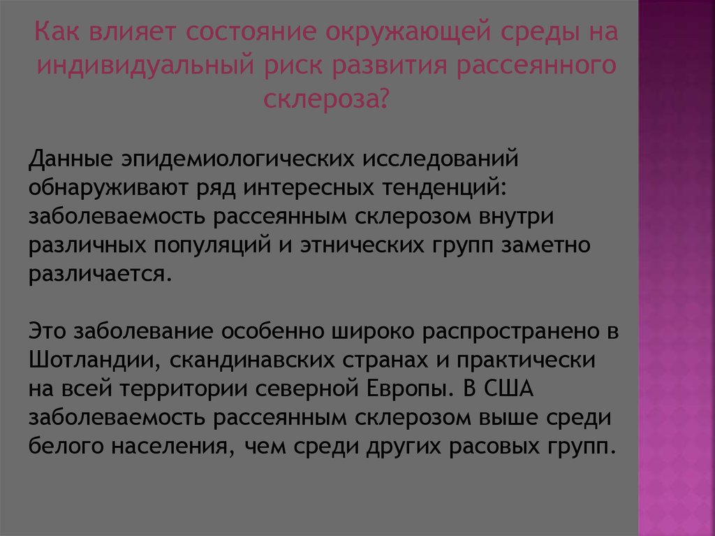 Как влияет состояние окружающей среды наиндивидуальный риск развития рассеянного