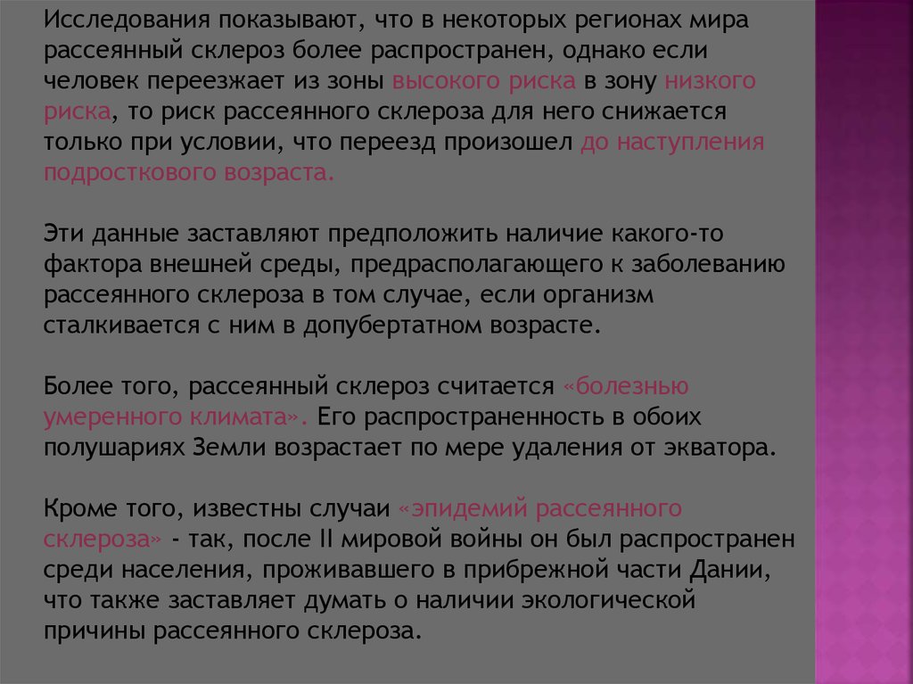 Рассеянный склероз. Этиология. Факторы риска