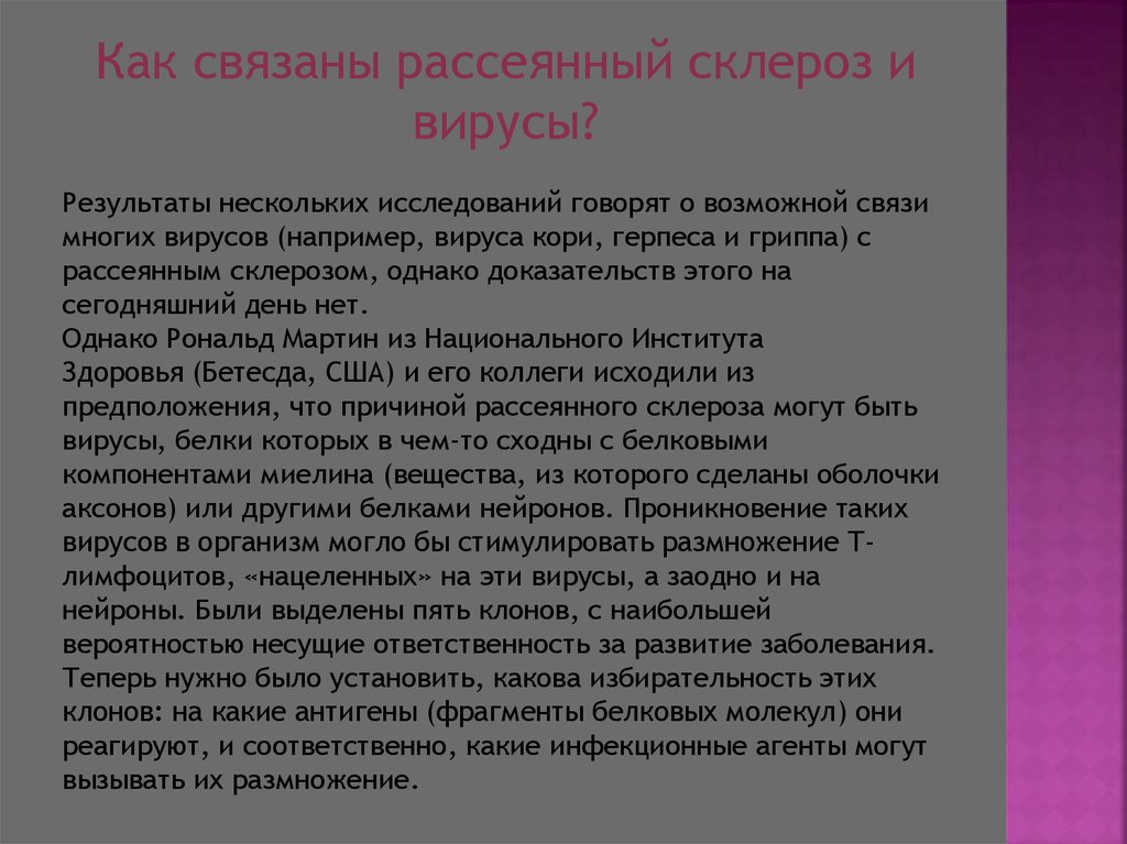Как связаны рассеянный склероз ивирусы?