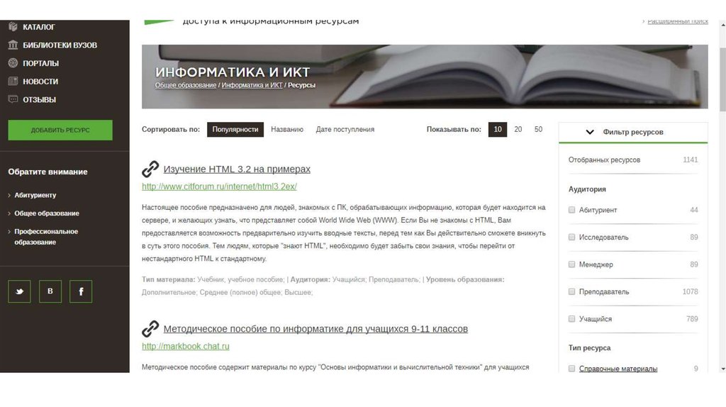 Информационные ресурсы об информационных ресурсах