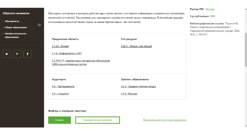 Ресурсы свободного доступа