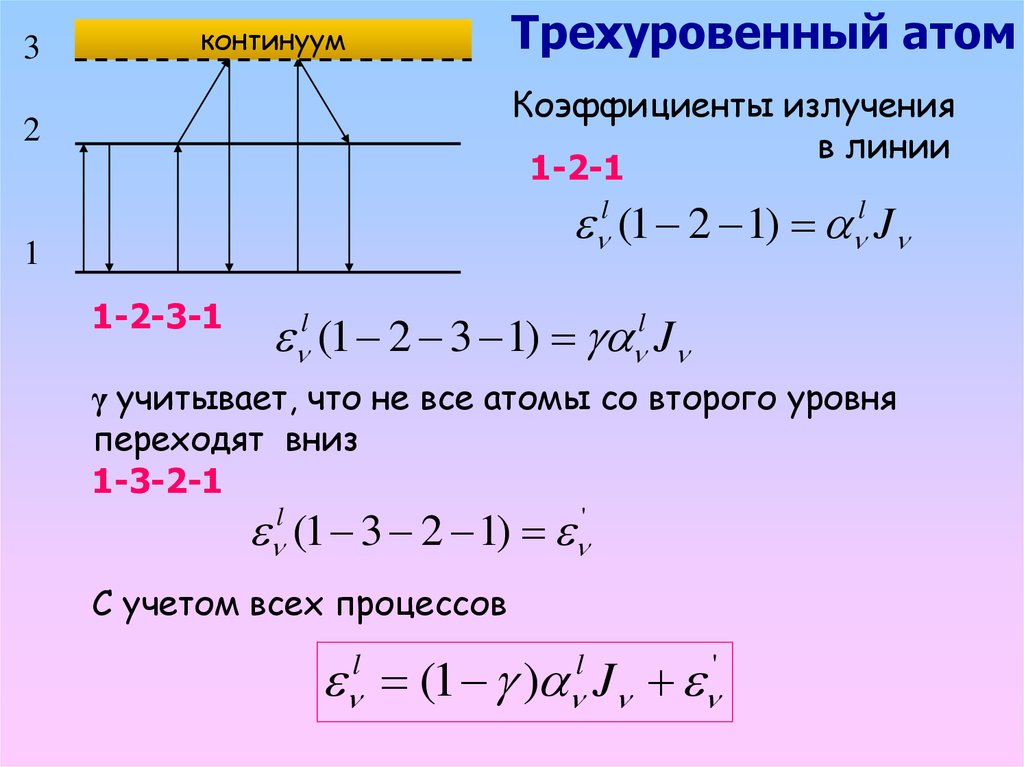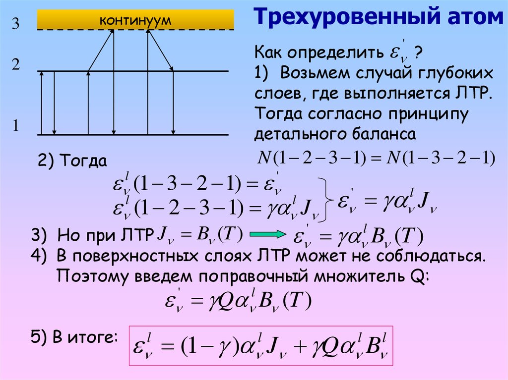 уровня 1 и плотностью излучения в частотах континуума 1-3