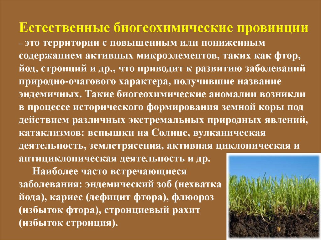 Естественные и искусственные биогеохимические провинции, влияние на здоровье населения, профилактика заболеваний