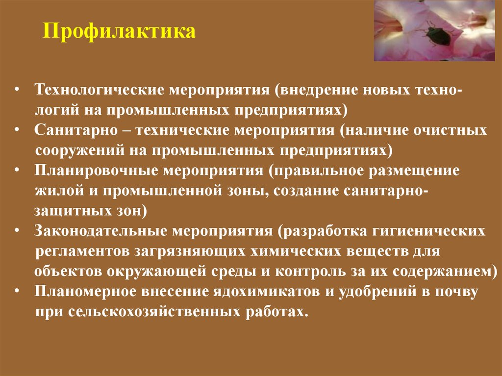 Профилактика• Технологические мероприятия (внедрение новых технологий на промышленных предприятиях)