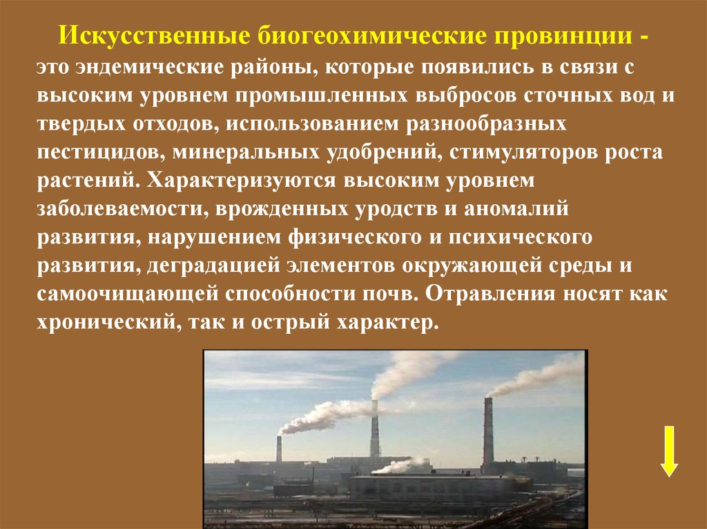Искусственные биогеохимические провинции это эндемические районы, которые появились в связи свысоким уровнем промышленных выбросов сточных вод и