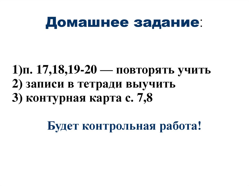 Домашнее задание:1)п. 17,18,19-20 — повторять учить