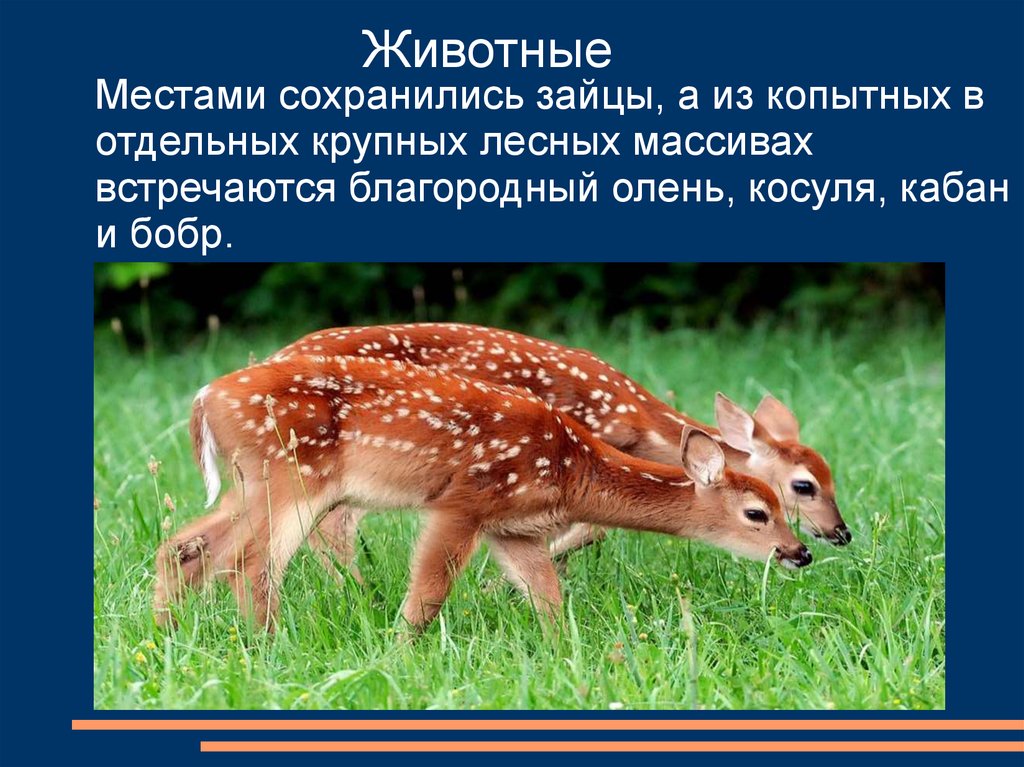 ЖивотныеМестами сохранились зайцы, а из копытных в