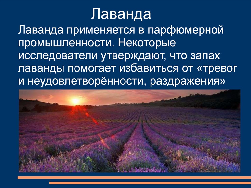 ЛавандаЛаванда применяется в парфюмерной